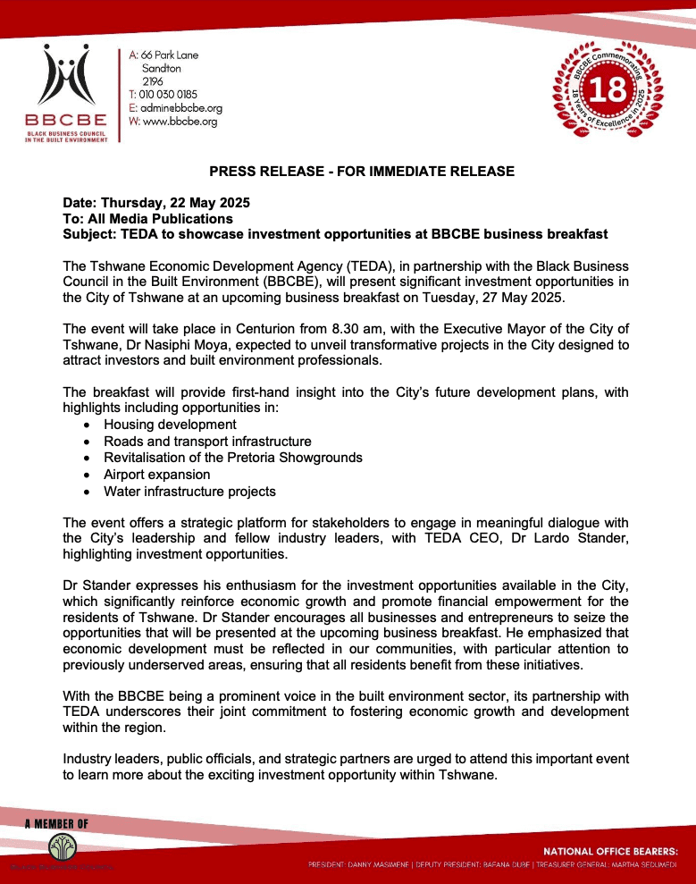 Nonprofit organisation the Black Business Council in the Built Environment (BBCBE) has signed a memorandum of understanding (MoU) with financial services firm Access Bank to unlock significant financing and acceleration