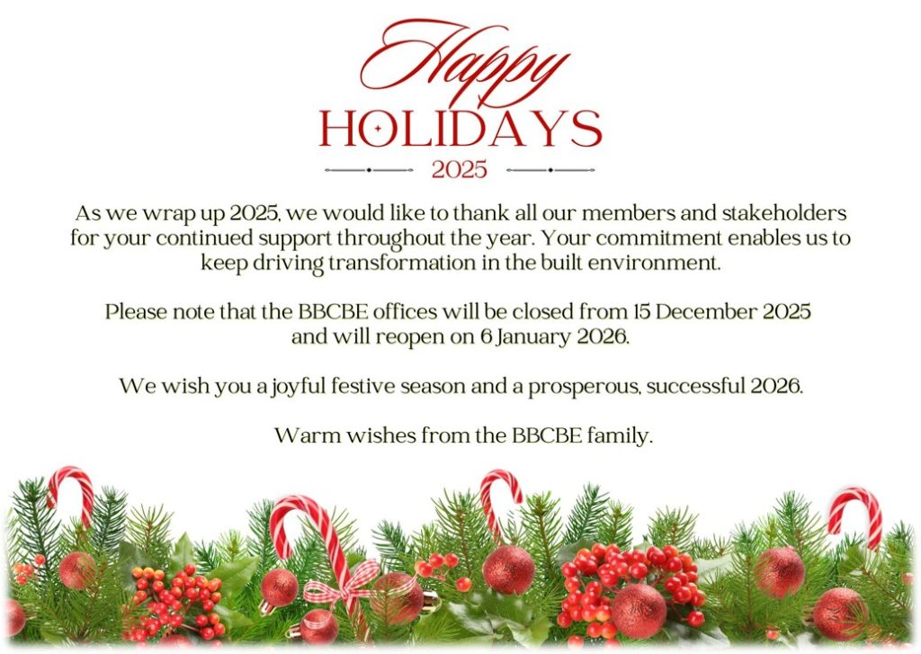 As we wrap up 2025, we would like to thank all our members and stakeholders for your continued support throughout the year. Your commitment enables us to keep driving transformation in the built environment.